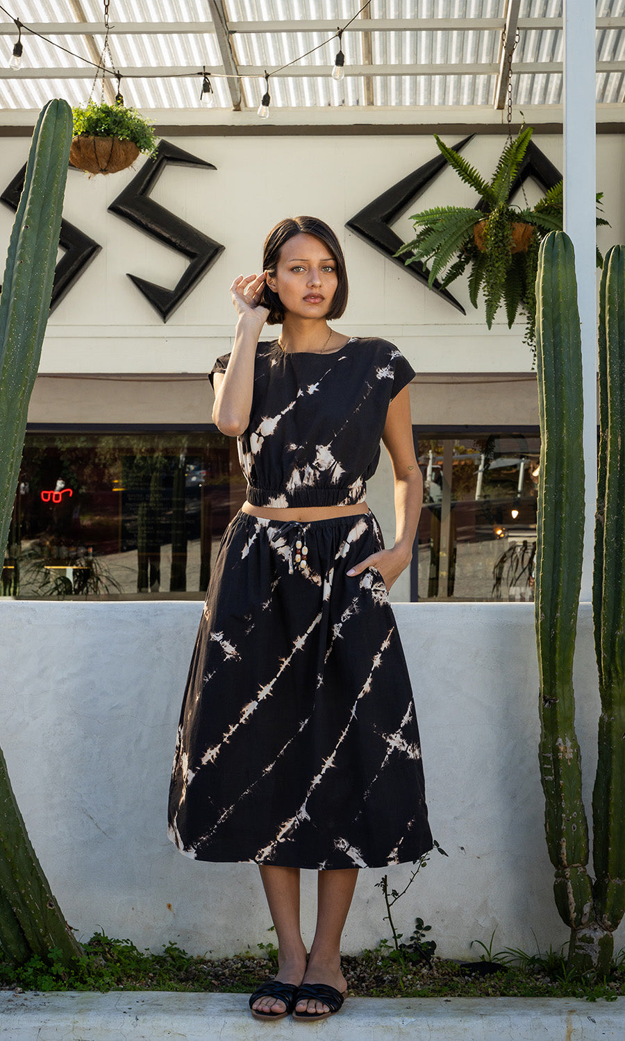 Wendy Midi Skirt // Black Shibori Wash